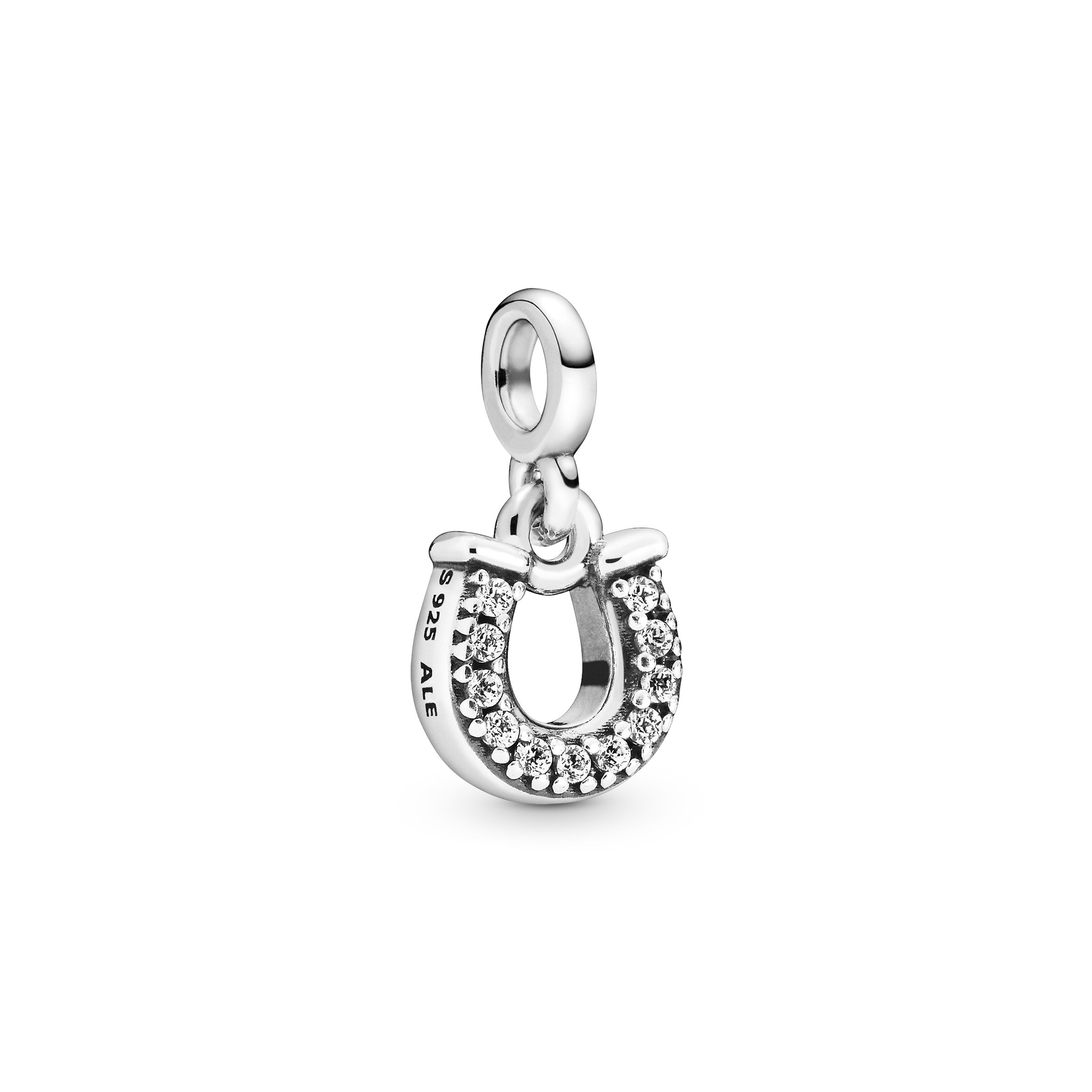Horseshoe sterling silver dangle charm with clear cubic zirconia